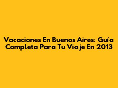Vacaciones En Buenos Aires: Guía Completa Para Tu Viaje En 2013