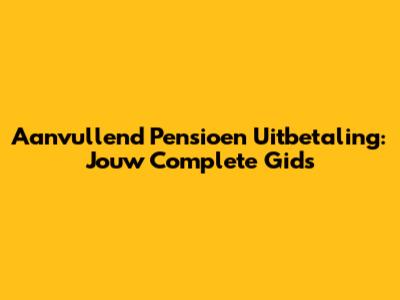 Wat is Aanvullend Pensioen Eigenlijk?