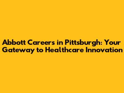 Hey there, future Abbott employee! Are you searching for Abbott careers in Pittsburgh, PA? You've landed in the right place! Pittsburgh, a city brimming with innovation and a rich history, is also a hub for leading healthcare companies like Abbott. This guide will walk you through everything you need to know about pursuing a career with Abbott in the Steel City, from job opportunities to the application process, and what it's like to work for this global healthcare giant. Let's dive in and explore the exciting possibilities that await you!