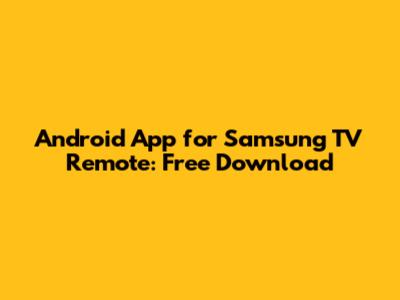 Android App For Samsung TV Remote: Free Download