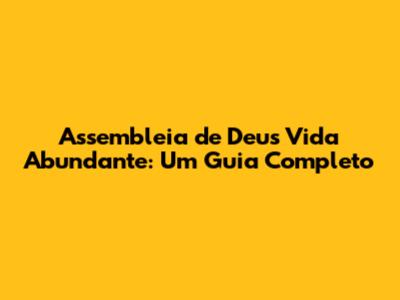 Assembleia De Deus Vida Abundante: Um Guia Completo