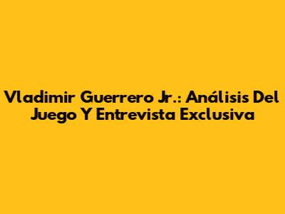 Vladimir Guerrero Jr.: Análisis Del Juego Y Entrevista Exclusiva