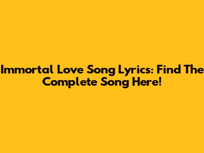 Immortal Love Song Lyrics: Find The Complete Song Here!