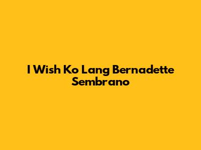 Hey guys! Ever wondered about the magic behind inspiring stories that touch our hearts? Well, today we’re diving deep into the world of "I Wish Ko Lang," especially focusing on the amazing Bernadette Sembrano and her incredible work on the show. Get ready for a heartfelt journey!