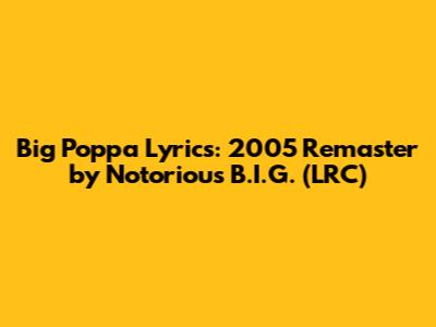 Let's dive into the lyrical genius of The Notorious B.I.G. with his iconic track, Big Poppa, specifically focusing on the 2005 Remastered version. This song isn't just a hip-hop classic; it’s a cultural touchstone, a smooth blend of braggadocio and charm that cemented Biggie Smalls as one of the greatest rappers of all time. We’re going to break down what makes these lyrics so memorable, why the 2005 remaster matters, and how you can get your hands on the LRC file to sing along. Whether you're a die-hard fan from the '90s or a new listener discovering the magic of Biggie, there's something here for everyone. We will explore the themes, the rhymes, and the overall impact of this timeless track. The lyrics of "Big Poppa" paint a vivid picture of the lavish lifestyle and confident persona that Biggie embodied. From describing his expensive taste in clothes and cars to detailing his romantic escapades, the song is a celebration of success and self-assurance. The repeated chorus of "I love it when you call me Big Poppa" is instantly recognizable and adds to the song's catchy and enduring appeal. Biggie's wordplay and storytelling abilities are on full display throughout the track, making it a quintessential example of his lyrical prowess. The 2005 remaster of "Big Poppa" enhances the listening experience by bringing a new level of clarity and depth to the original recording. This remastering process often involves cleaning up the audio, improving the dynamic range, and optimizing the overall sound quality. As a result, listeners can appreciate the intricate details of the production and Biggie's vocal performance even more. For audiophiles and dedicated fans, the 2005 remaster is a must-have version that offers a fresh perspective on a beloved classic. The availability of LRC files for "Big Poppa" allows fans to follow along with the lyrics in real-time, enhancing their listening experience and making it easier to sing along. LRC files are synchronized text files that display lyrics as the song plays, providing a karaoke-like experience. Whether you're hosting a Biggie-themed party or simply enjoying the track on your own, having the LRC file can add a fun and interactive element to your listening session. Several websites and online communities offer LRC files for "Big Poppa" and other popular songs.