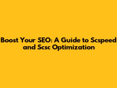 Boost Your SEO: A Guide To Scspeed And Scsc Optimization