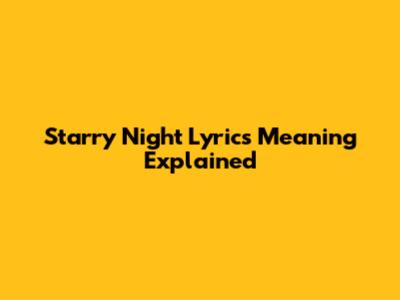 Starry Night Lyrics Meaning Explained
