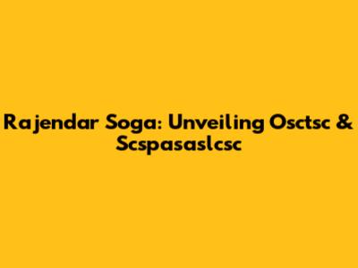 Rajendar Soga: Unveiling Osctsc & Scspasaslcsc