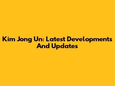 Kim Jong Un: Latest Developments And Updates