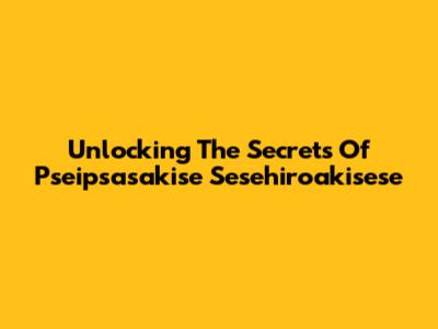 Unlocking The Secrets Of Pseipsasakise Sesehiroakisese