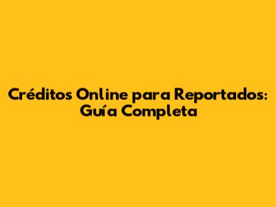 Créditos Online Para Reportados: Guía Completa