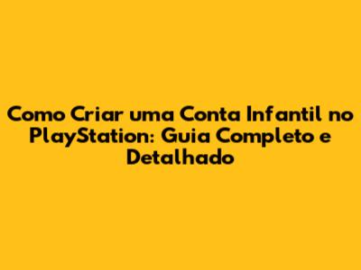 Passo a Passo: Criando uma Conta Infantil no PlayStation