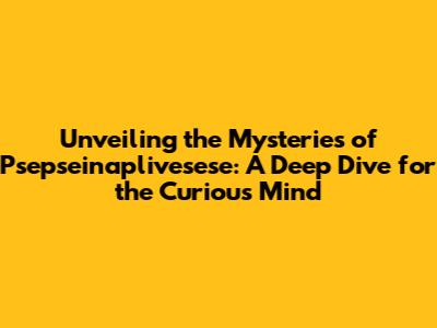 Unveiling the Mysteries of Psepseinaplivesese: A Deep Dive for the Curious Mind