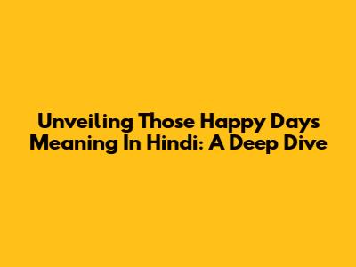 Unveiling 'Those Happy Days' Meaning In Hindi: A Deep Dive