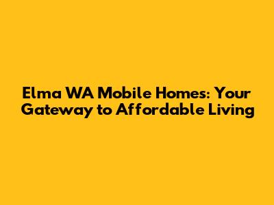 Where to Find Mobile Homes for Sale in Elma WA