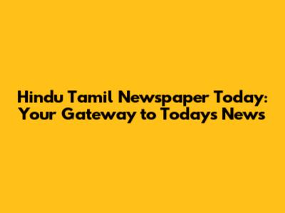 Hindu Tamil Newspaper Today: Latest Edition PDF