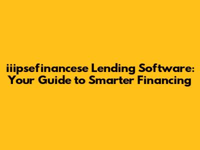 Iiipsefinancese Lending Software: Your Guide To Smarter Financing