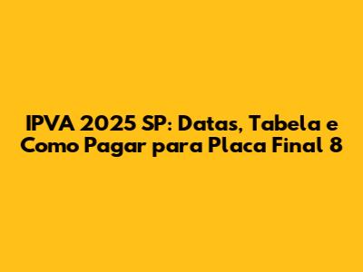 Hey guys! If you're a car owner in São Paulo, you know that the IPVA (Imposto sobre a Propriedade de Veículos Automotores) is a mandatory tax. It's that time of year again to start thinking about the IPVA 2025 SP. For those with license plates ending in 8, this article is your go-to guide! We'll break down everything you need to know about the IPVA 2025, including due dates, payment options, and how to avoid any headaches. Let's dive in and make sure you're all set for the IPVA season!