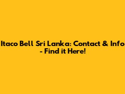 Finding Itaco Bell Sri Lanka: Your Quest Begins!