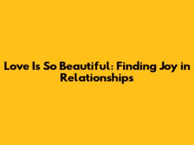 Love Is So Beautiful: Finding Joy In Relationships