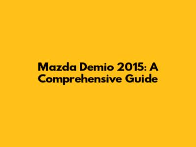 Mazda Demio 2015: Your Ultimate Guide To Repair & Ownership