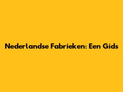 Nederlandse Fabrieken: Een Gids