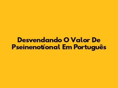 Desvendando O Valor De 'Pseinenotíonal' Em Português
