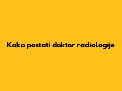 Koraci za Postizanje Zvanja Radiologa