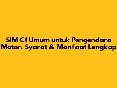 SIM C1 (Surat Izin Mengemudi C1) adalah jenis SIM yang mungkin masih asing di telinga sebagian besar pengendara motor di Indonesia. Namun, dengan perkembangan teknologi dan kebutuhan akan keamanan berkendara, SIM C1 hadir sebagai solusi untuk meningkatkan kompetensi pengemudi motor. Buat kalian yang penasaran, yuk kita bedah tuntas tentang SIM C1 umum untuk pengendara motor, mulai dari persyaratan, manfaat, hingga cara mendapatkannya. Artikel ini akan memberikan informasi lengkap yang mudah dipahami, sehingga kalian bisa lebih bijak dalam berkendara.