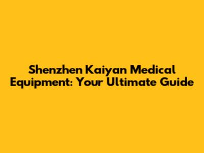 Shenzhen Kaiyan Medical Equipment: Your Ultimate Guide