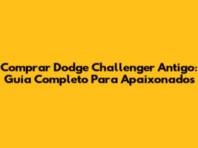 Comprar Dodge Challenger Antigo: Guia Completo Para Apaixonados