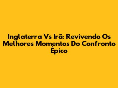 Inglaterra Vs Irã: Revivendo Os Melhores Momentos Do Confronto Épico