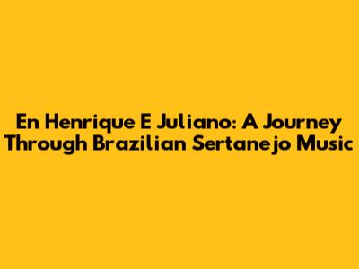 En Henrique E Juliano: A Journey Through Brazilian Sertanejo Music
