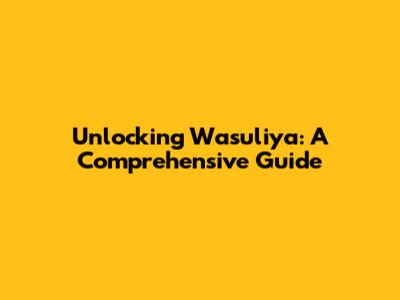 Unlocking Wasuliya: A Comprehensive Guide