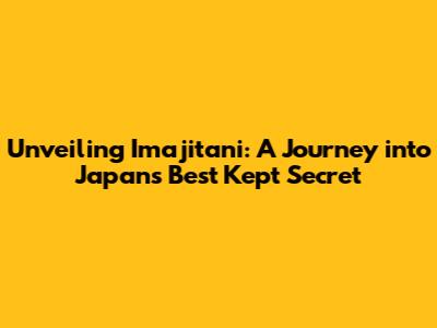 Unveiling Imajitani: A Journey Into Japan's Best Kept Secret
