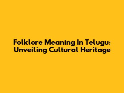Folklore Meaning In Telugu: Unveiling Cultural Heritage