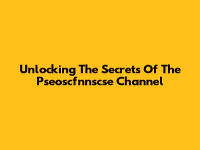 Unlocking The Secrets Of The Pseoscfnnscse Channel